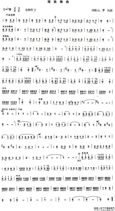 瑶族舞曲葫芦丝谱(刘铁山、茅沅作曲版),瑶族舞曲葫芦丝简谱"