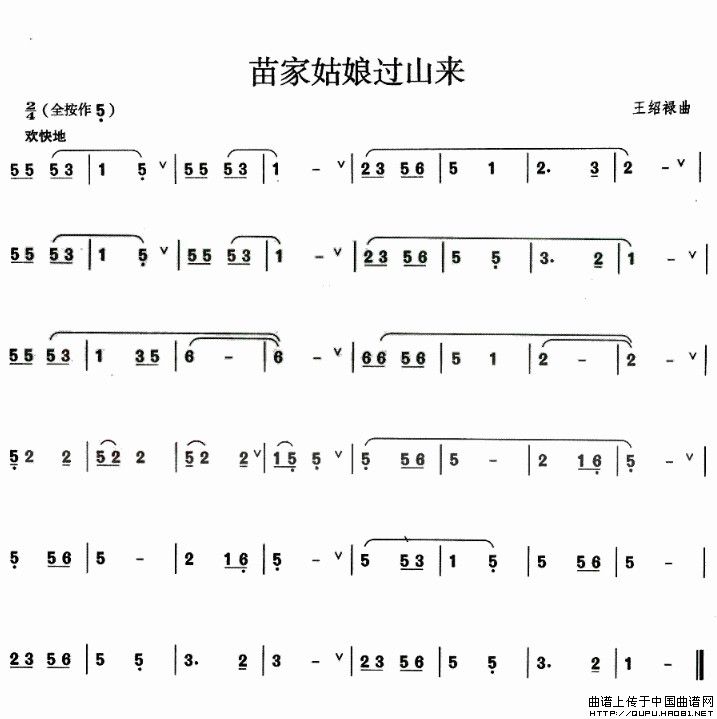 苗家姑娘过山来葫芦丝谱,苗家姑娘过山来葫芦丝简谱"