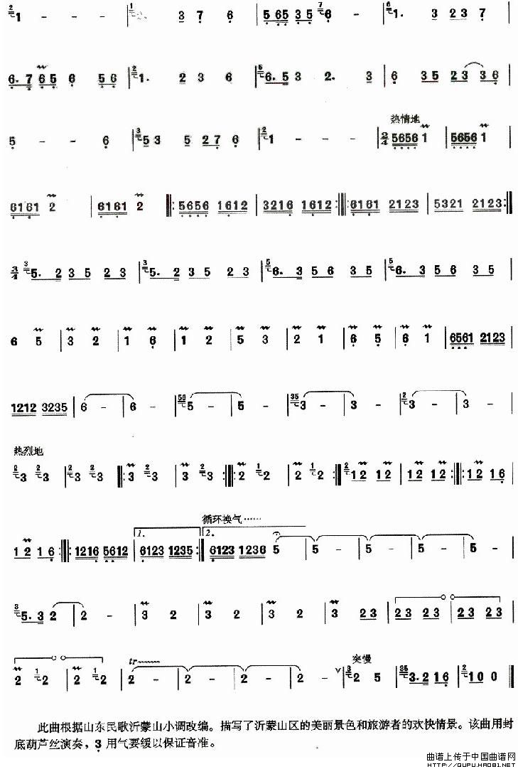 蒙山新貌葫芦丝谱,蒙山新貌葫芦丝简谱"