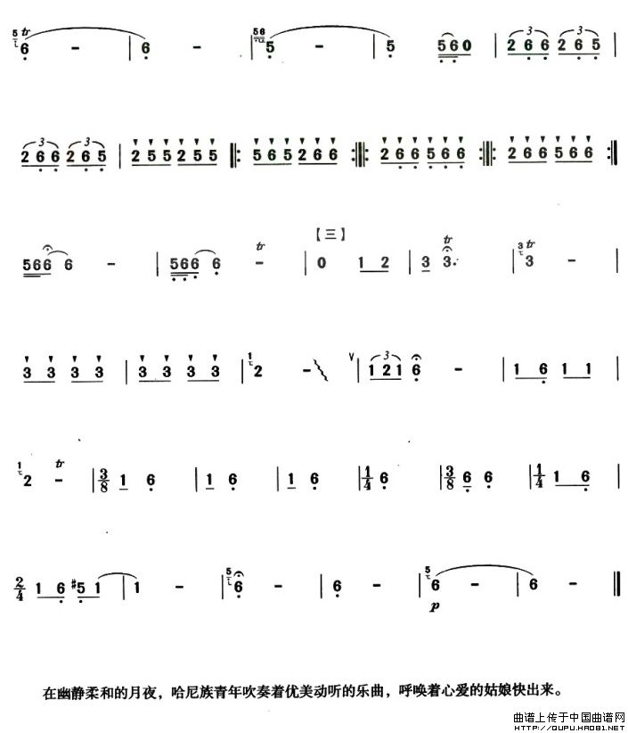 哈尼情歌葫芦丝谱(巴乌谱),哈尼情歌葫芦丝简谱"