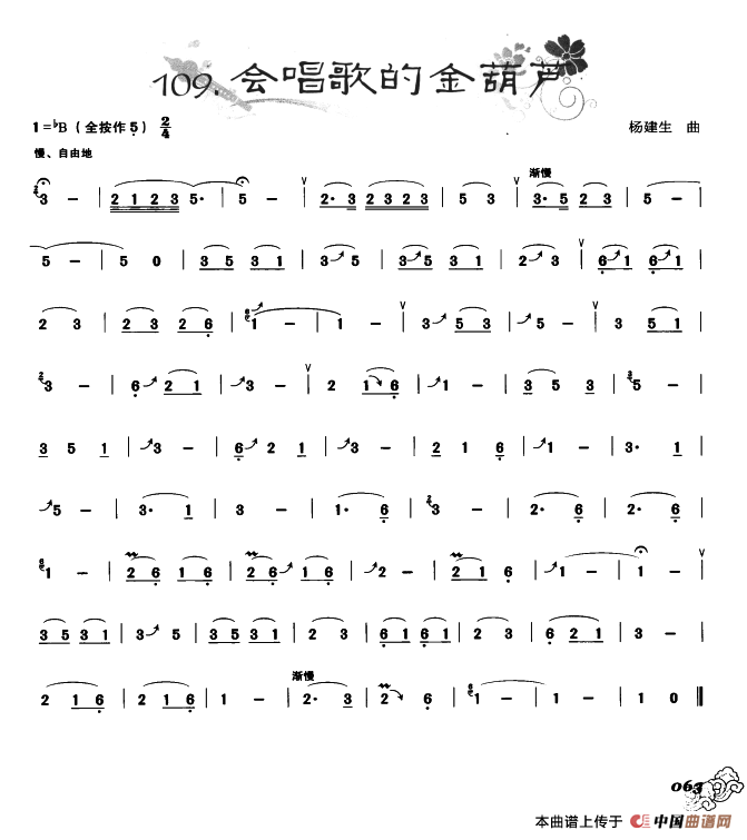 葫芦丝曲精选:会唱歌的金葫芦葫芦丝谱,葫芦丝曲精选:会唱歌的金葫芦葫芦丝简谱"