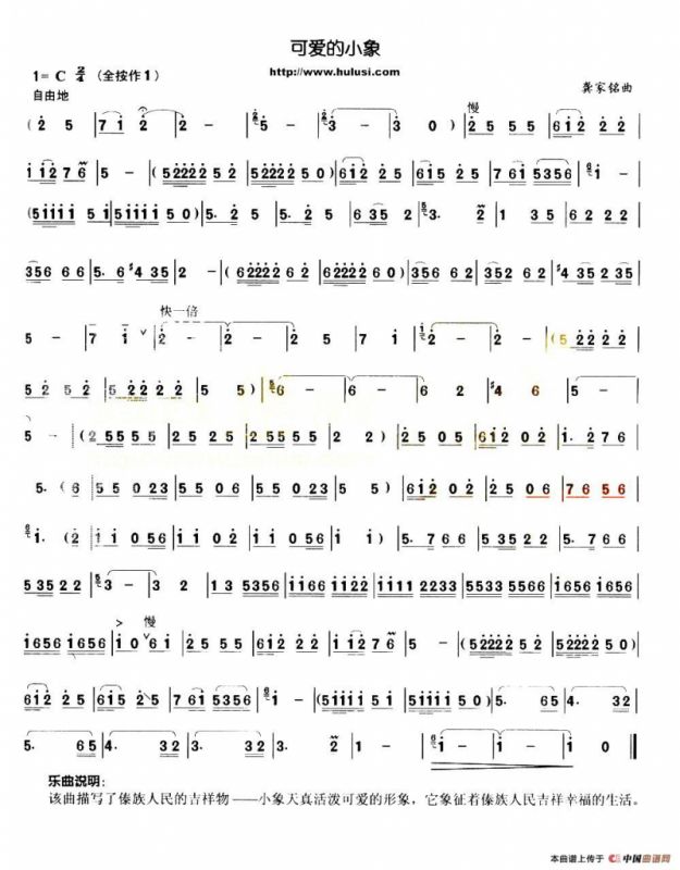 可爱的小象葫芦丝谱,可爱的小象葫芦丝简谱"