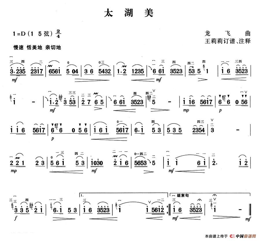 太湖美胡琴谱,太湖美简谱"