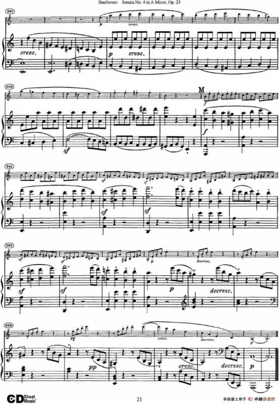 Violin Sonata No.4 in A Minor Op.23(小提琴+钢琴伴奏)提琴谱,简谱