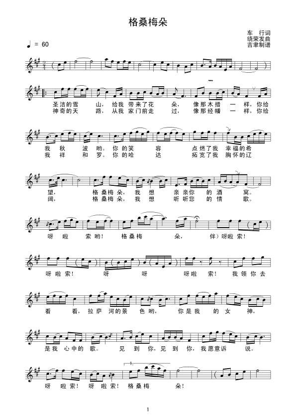 格桑梅朵简谱,格桑梅朵歌曲简介