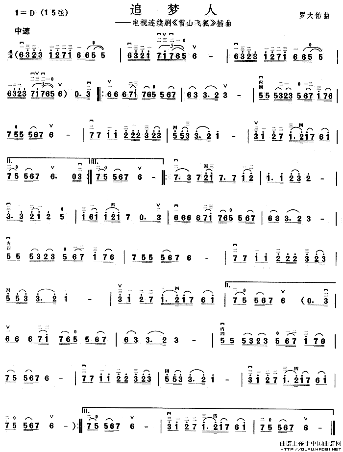 追梦人胡琴谱(电视剧《雪山飞狐》插曲),追梦人简谱"