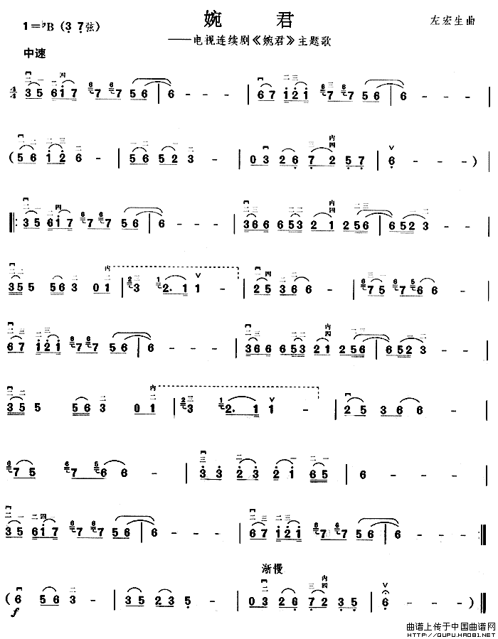 婉君胡琴谱(同名电视剧主题曲),婉君简谱"