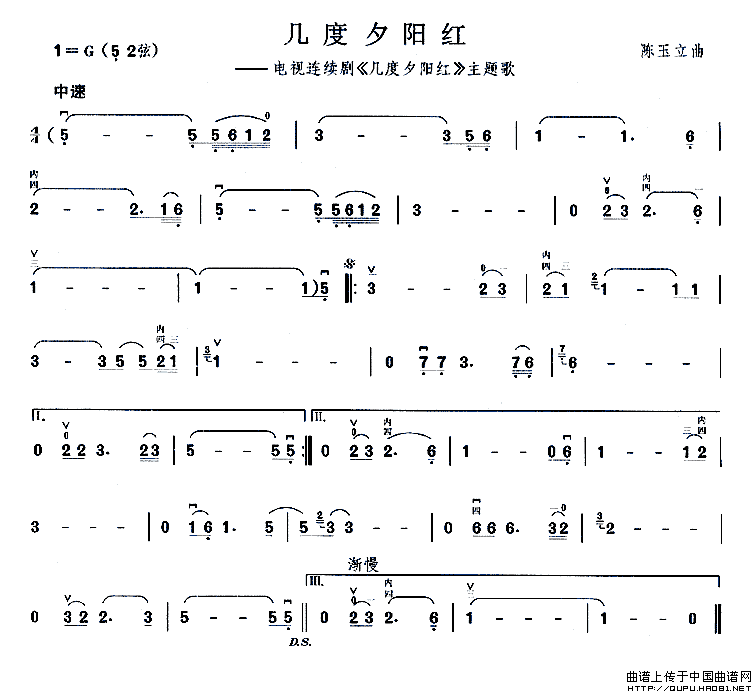 几度夕阳红胡琴谱(同名电视剧主题曲),几度夕阳红简谱"