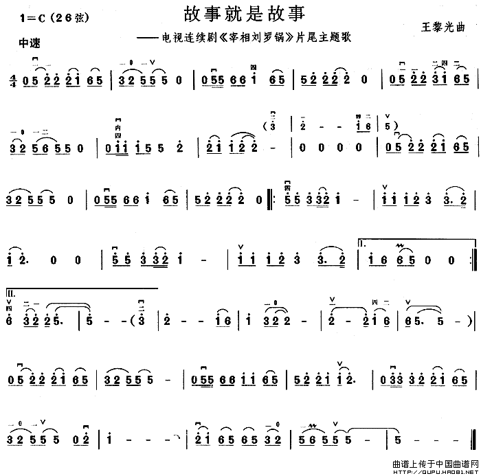 故事就是故事胡琴谱(电视剧《宰相刘罗锅》片尾曲),故事就是故事简谱"