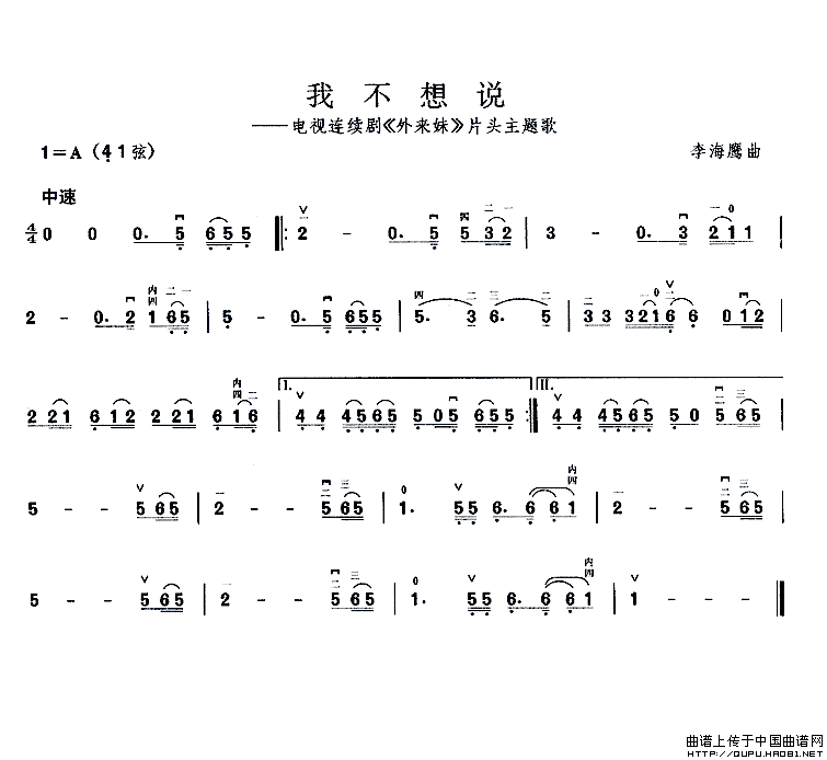我不想说胡琴谱(电视剧《外来妹》片头曲),我不想说简谱"
