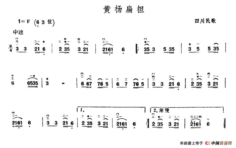 黄杨扁担胡琴谱(3个版本),黄杨扁担简谱"