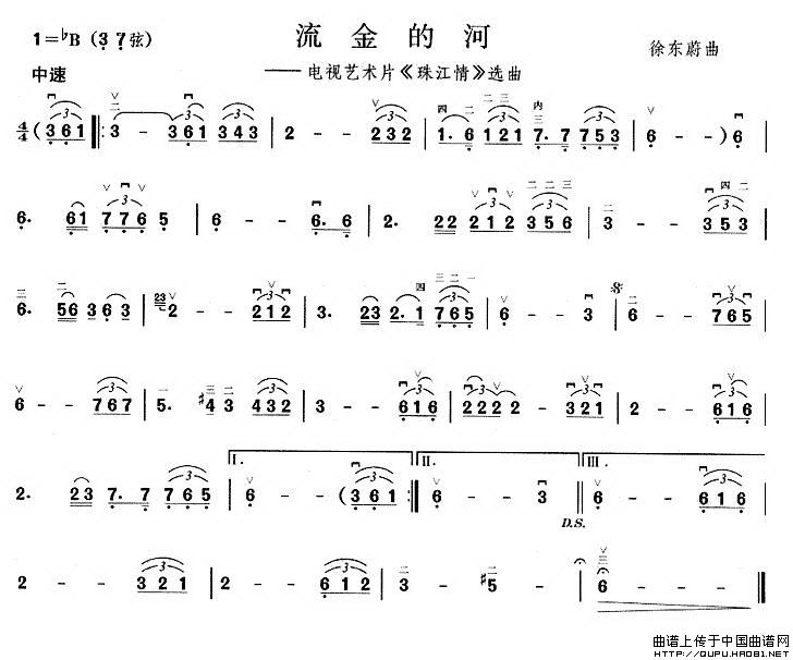 流金的河胡琴谱(电视艺术片《珠江情》选曲),流金的河简谱"