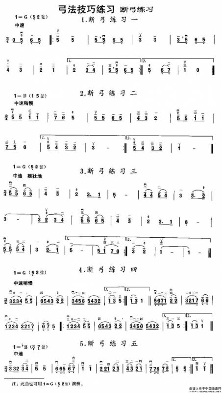 二胡微型练习曲:断弓练习胡琴谱,二胡微型练习曲:断弓练习简谱"