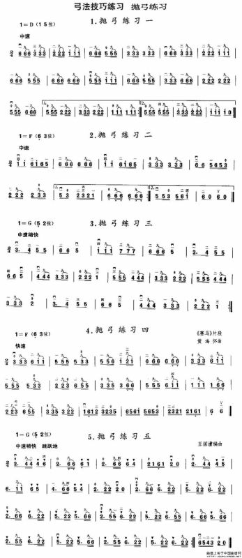 二胡微型练习曲:抛弓练习胡琴谱,二胡微型练习曲:抛弓练习简谱"