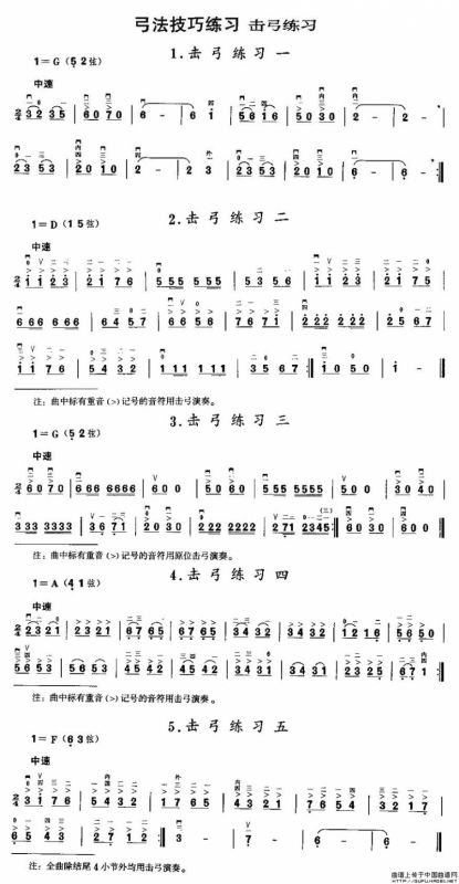 二胡微型练习曲:击弓练习胡琴谱,二胡微型练习曲:击弓练习简谱"