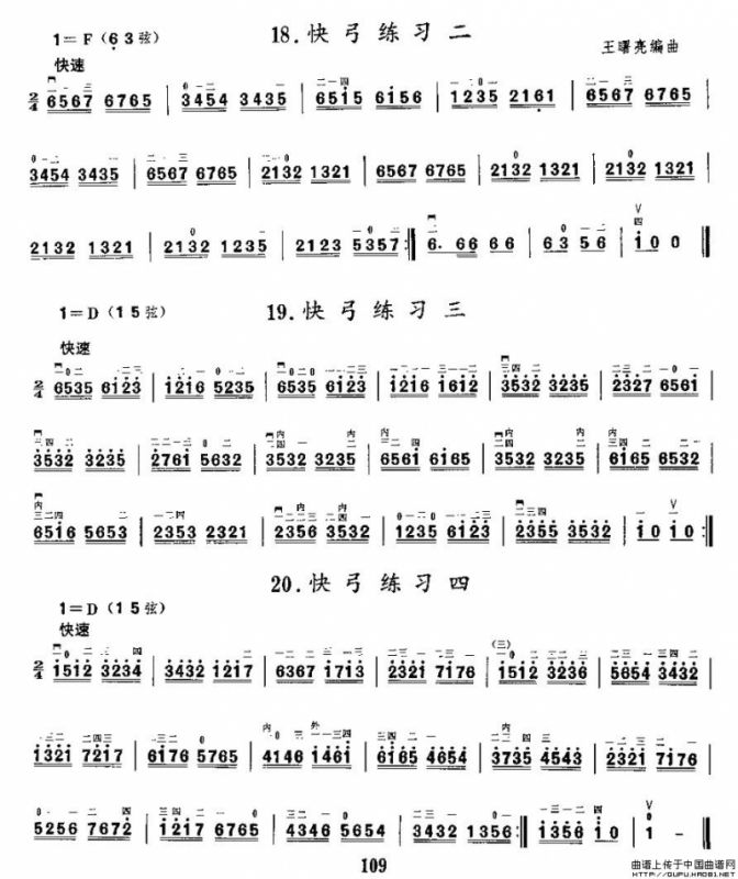 二胡微型练习曲:快弓练习胡琴谱(12—20),二胡微型练习曲:快弓练习简谱"