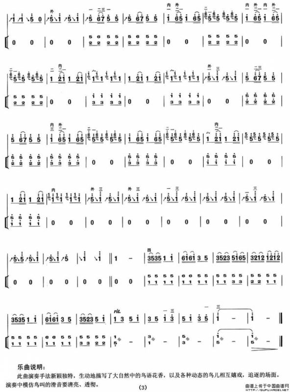 空山鸟语胡琴谱(扬琴伴奏谱),空山鸟语简谱"