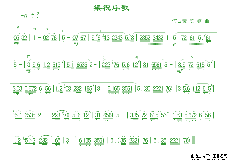 梁祝序歌胡琴谱,梁祝序歌简谱"