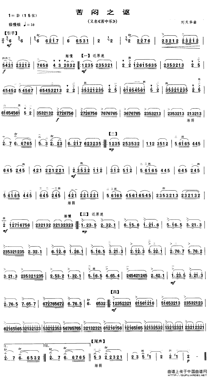 苦闷之讴胡琴谱(又名:苦中乐),苦闷之讴简谱"