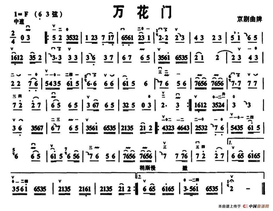 万花门胡琴谱(京胡曲牌),万花门简谱"