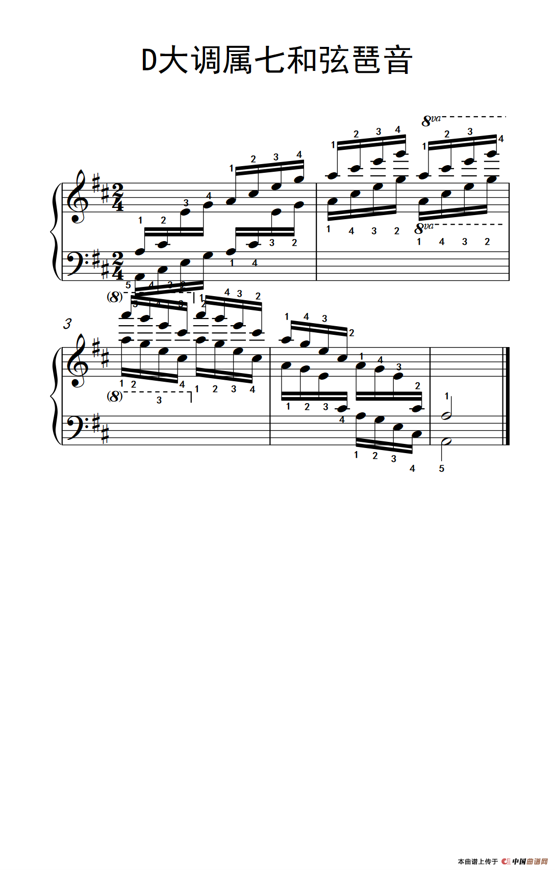 第六级 5.D大调属七和弦琶音(中央音乐学院 钢琴(业余)考级教程 4-6级)钢琴谱,简谱