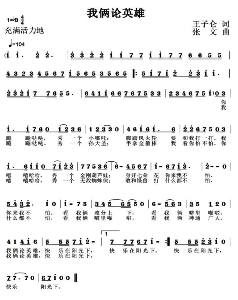 我俩论英雄简谱,我俩论英雄歌曲简介