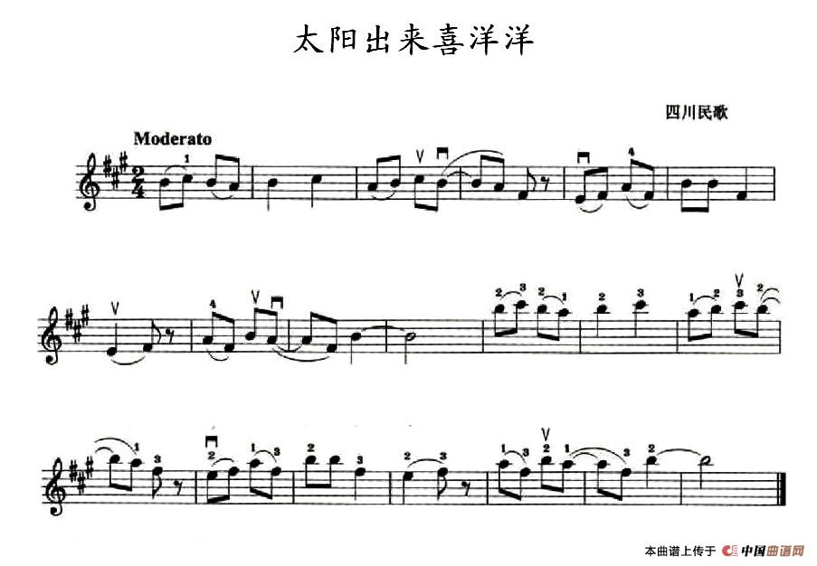 太阳出来喜洋洋提琴谱,太阳出来喜洋洋简谱