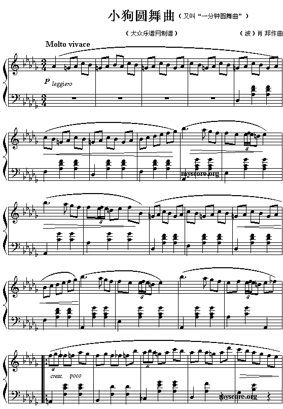 小狗圆舞曲简谱,小狗圆舞曲歌曲简介
