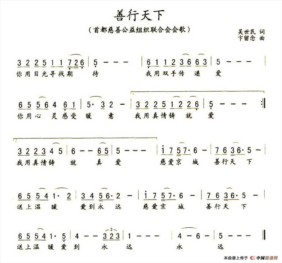 善行天下歌曲简介善行天下是一首感人深的歌曲,它以温暖的旋律和动人的歌词,唤起人们的善良之心,呼