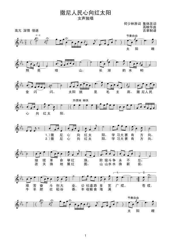撒尼人民心向红太阳简谱,撒尼人民心向红太阳歌曲简介