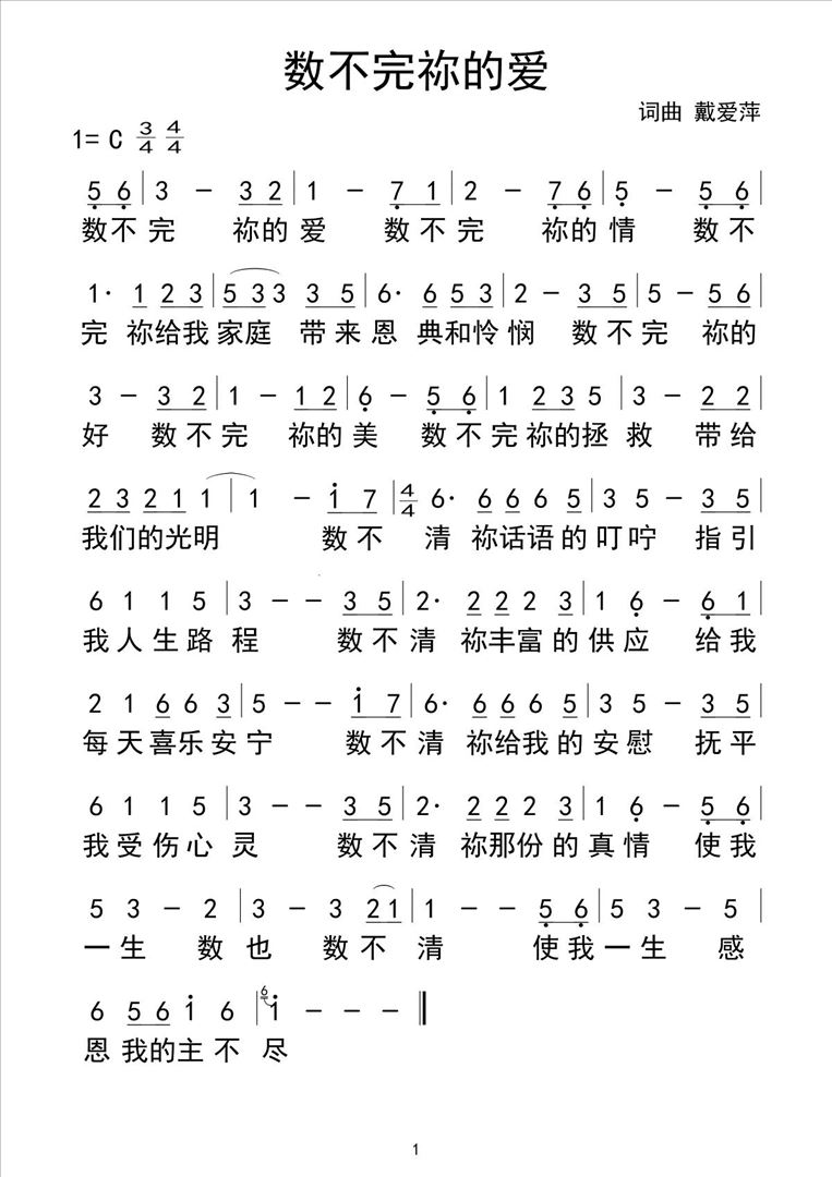 数不完你的爱简谱,数不完你的爱歌曲简介