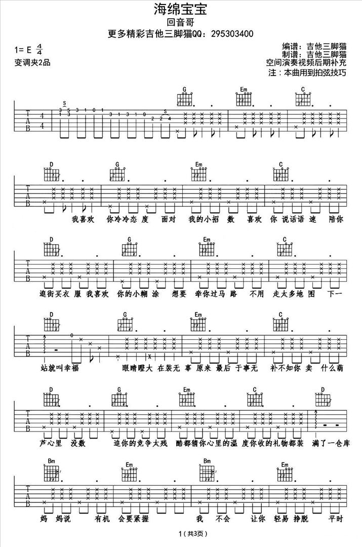 海绵宝宝简谱,海绵宝宝歌曲简介