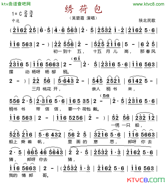 绣荷包简谱,演唱吴碧霞,歌词