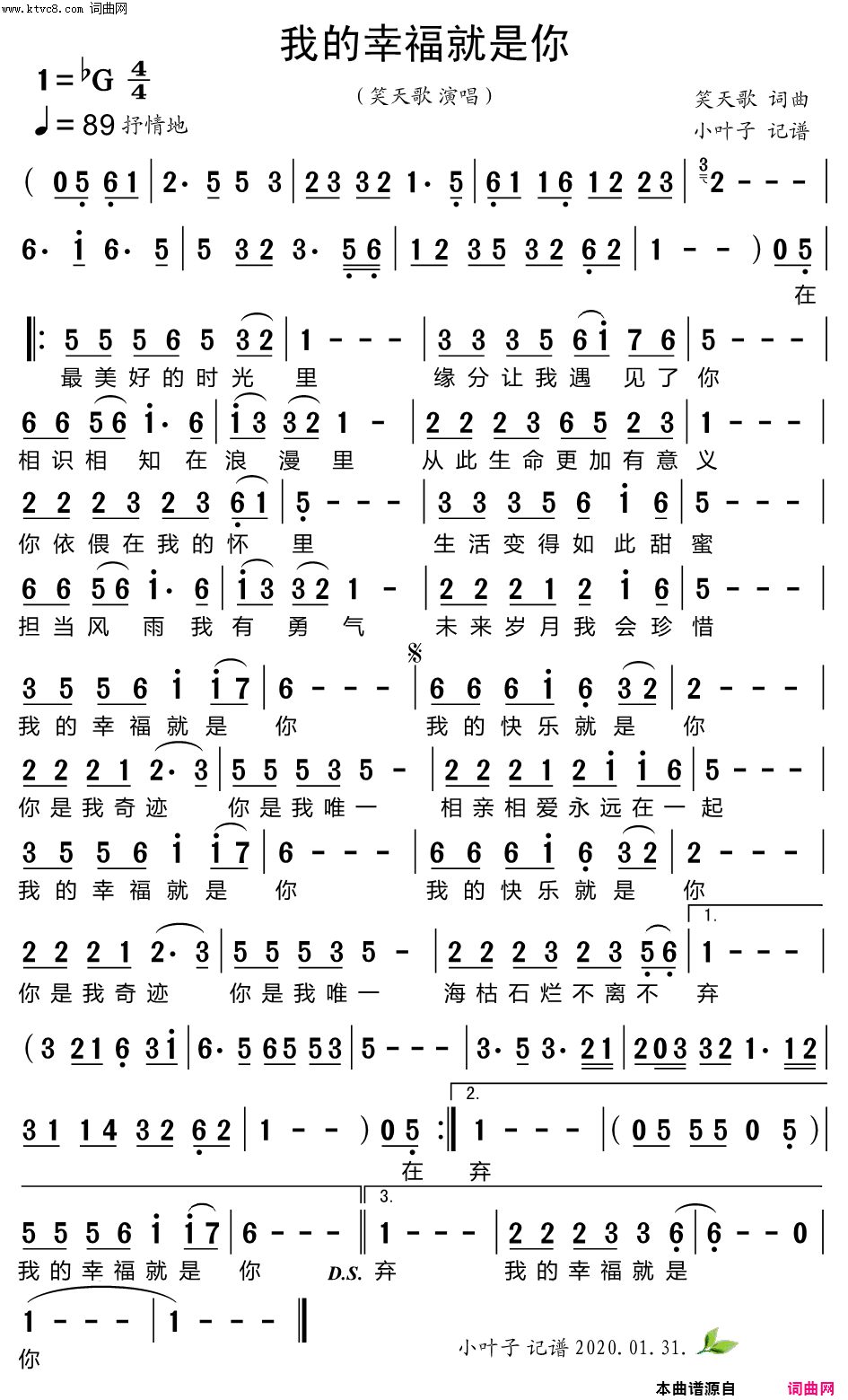 我的幸福就是你简谱,演唱笑天歌,歌词