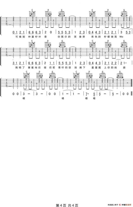 第一天吉他谱(尤克里里弹唱谱),第一天简谱"