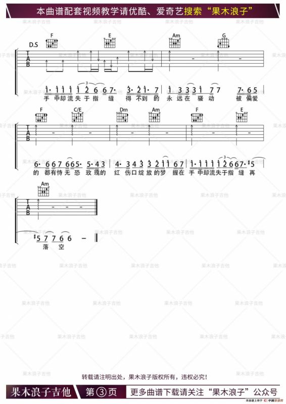 红玫瑰吉他谱(果木浪子编配版),红玫瑰简谱"
