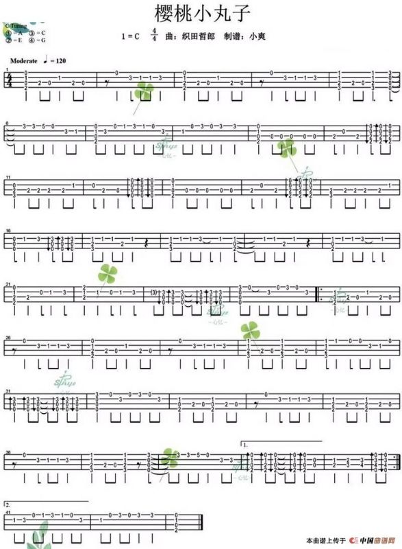 樱桃小丸子吉他谱(尤克里里指弹谱),樱桃小丸子简谱"