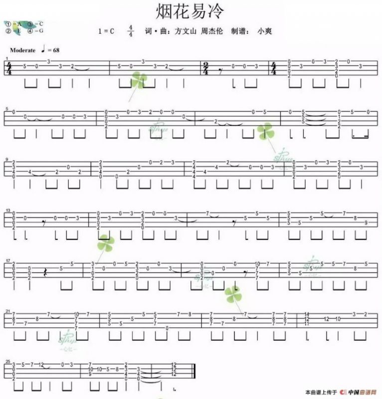 烟花易冷吉他谱(尤克里里指弹谱),烟花易冷简谱"