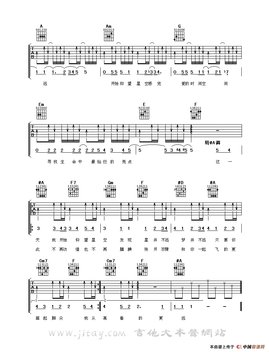 仰望星空吉他谱(曹轩宾词曲),仰望星空简谱"