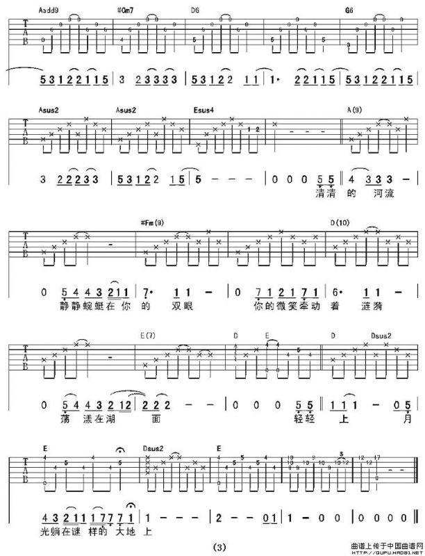 抚仙湖吉他谱,抚仙湖简谱"