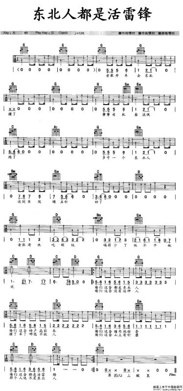 东北人都是活雷锋吉他谱,东北人都是活雷锋简谱"