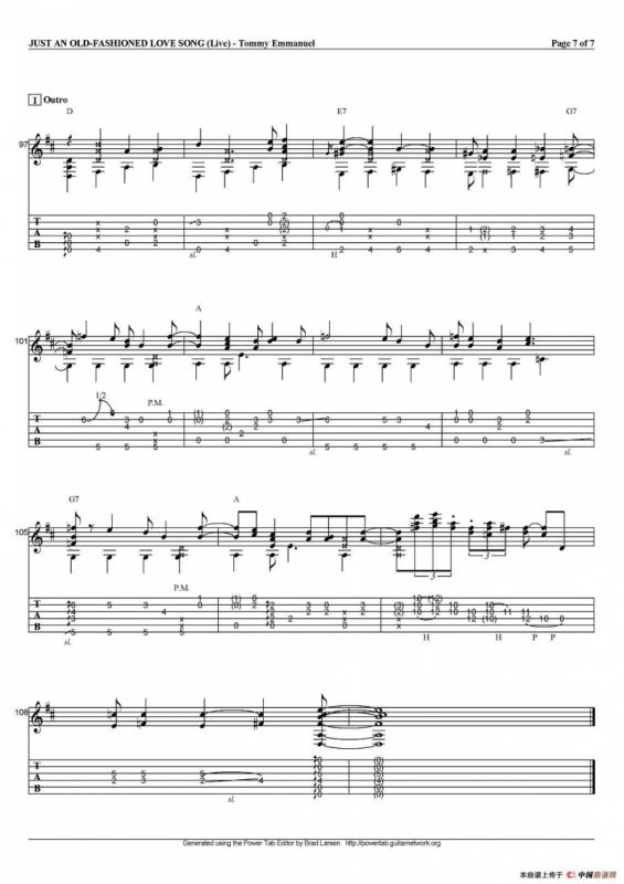 tommy emmanuel:just an old fashioned love song(指弹吉他)吉他谱,简谱"