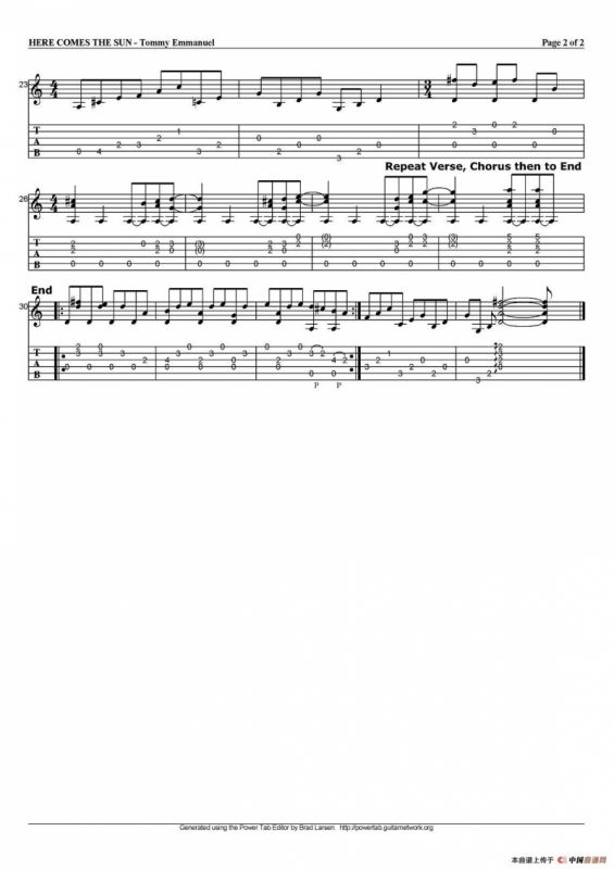 tommy emmanuel:here comes the sun(指弹吉他)吉他谱,简谱"