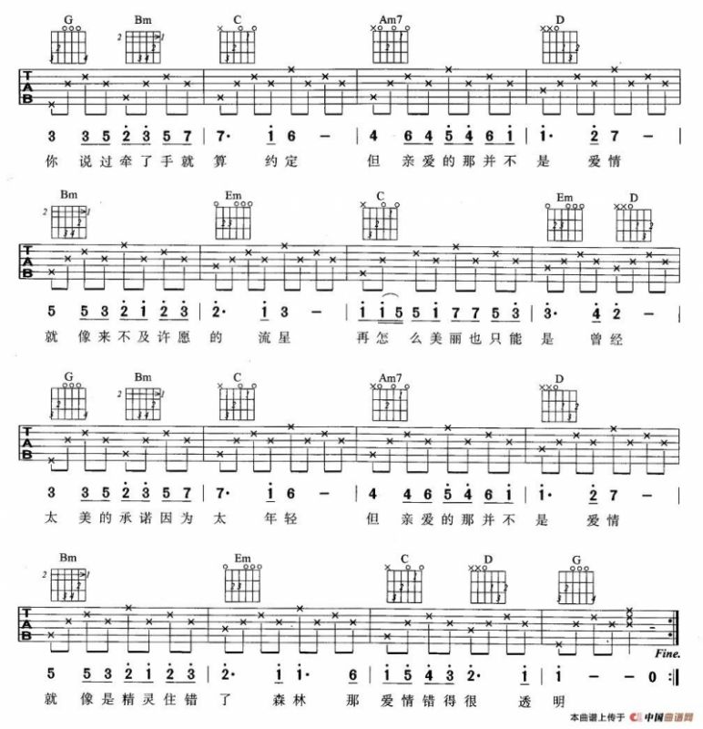 亲爱的那不是爱情吉他谱,亲爱的那不是爱情简谱"