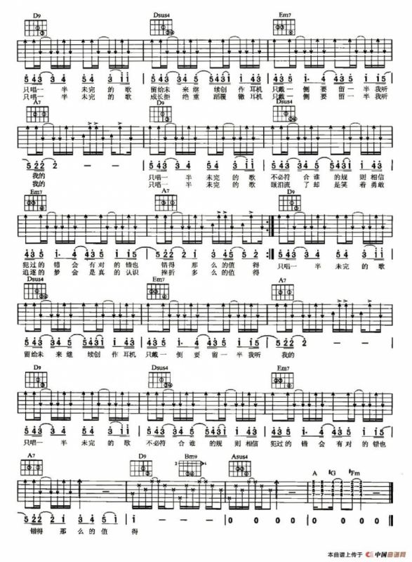 唱一半的歌吉他谱,唱一半的歌简谱"