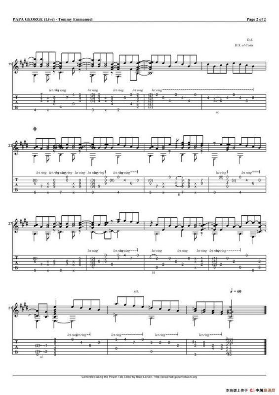 tommy emmanuel:papa george(指弹吉他)吉他谱,简谱"
