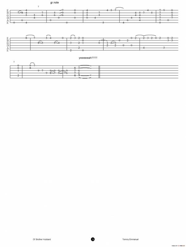 tommy emmanuel:ol brother hubbard(指弹吉他)吉他谱,简谱"
