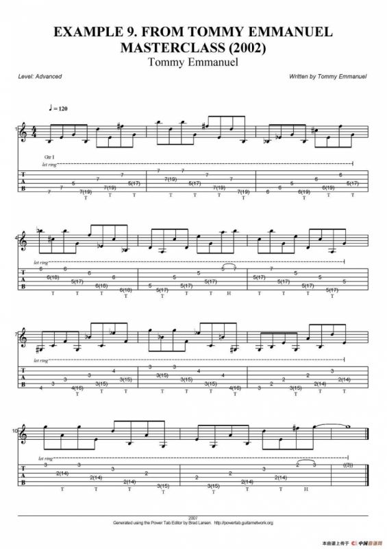 tommy emmanuel:masterclass example-9(指弹吉他)吉他谱,简谱"