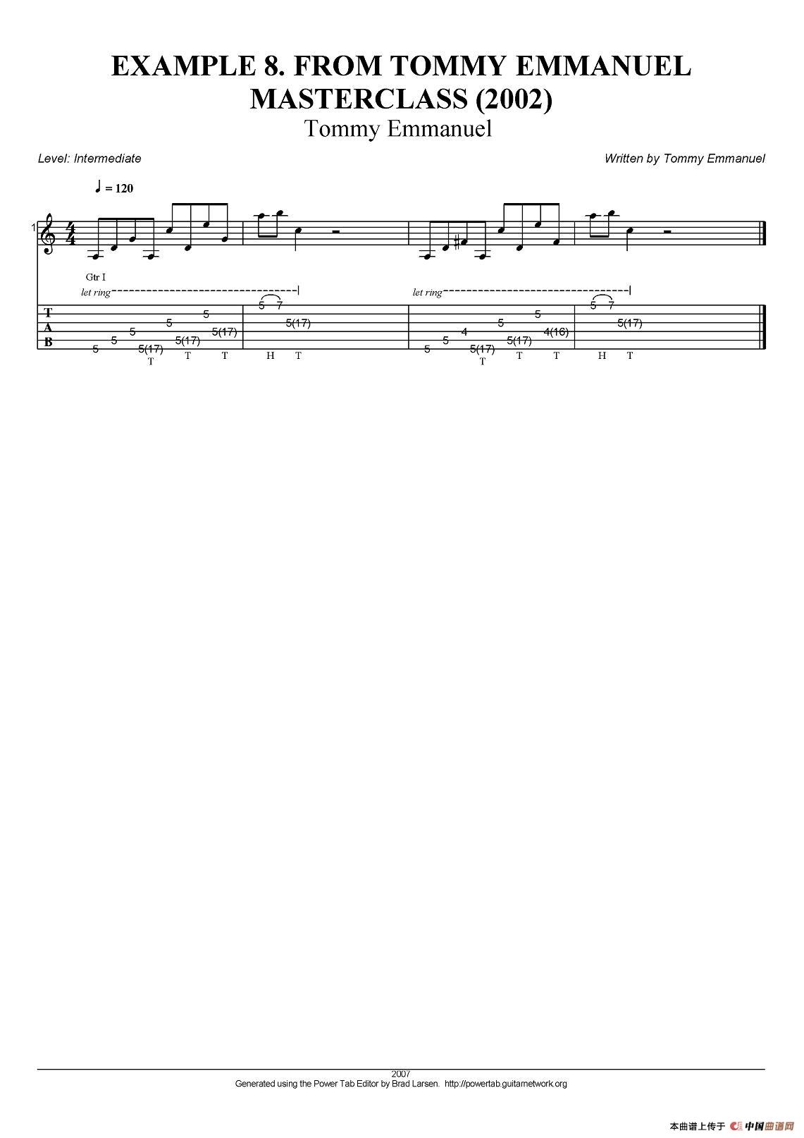 tommy emmanuel:masterclass example-8(指弹吉他)吉他谱,简谱"