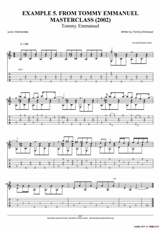 tommy emmanuel:masterclass example-5(指弹吉他)吉他谱,简谱"
